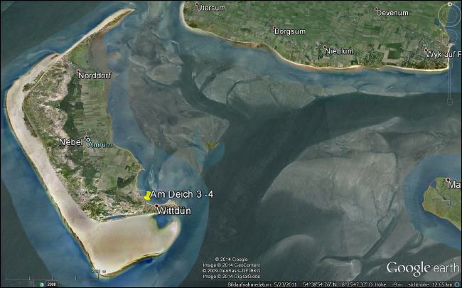 Hier sehen Sie die Position unserer Wohnung auf der Insel Amrum: